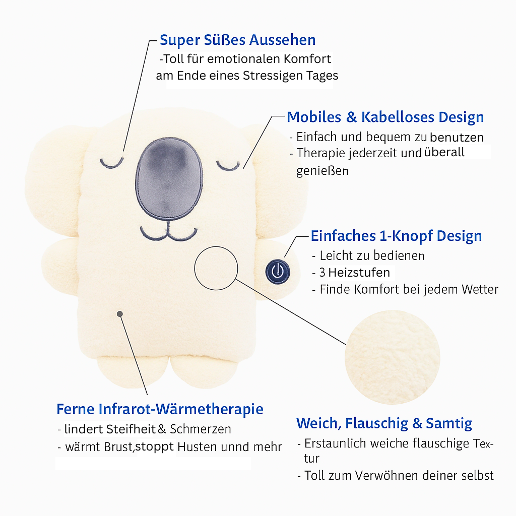 In einer hektischen Welt bringt dich der Beheizbare-Koala zurück zu Ruhe und Wärme. Er erinnert dich daran, kurz durchzuatmen und dich um dich selbst zu kümmern.